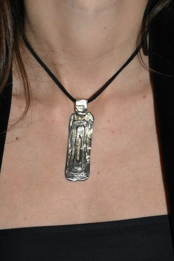 Cordón en gamuza sintética negra. Terminales del cordón enchapadas en Alpaca o Bronce a combinación del material del dije.
