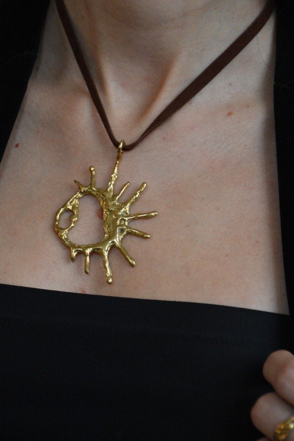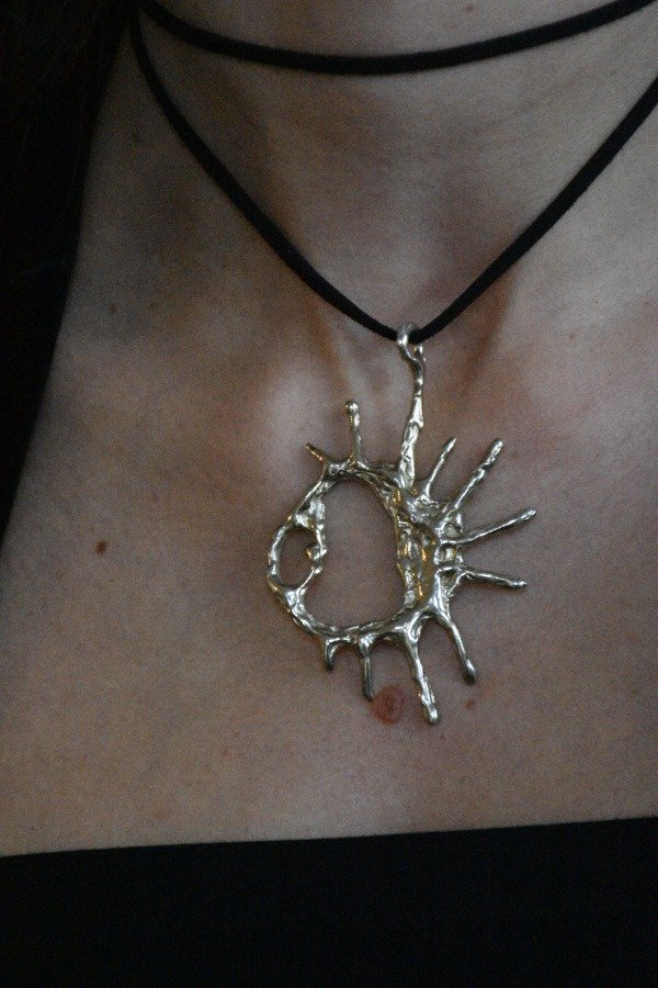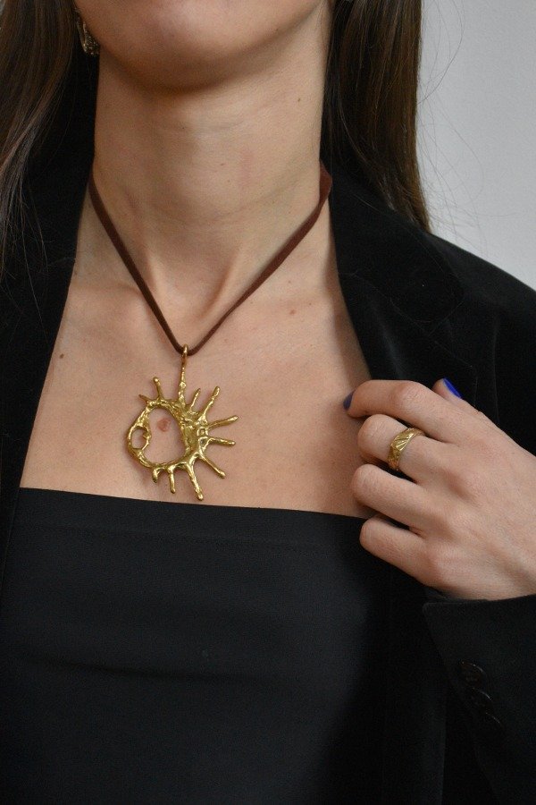 Cordón en gamuza sintética. El color del cordón del dije en alpaca es negro y el del dije en bronce es marrón.