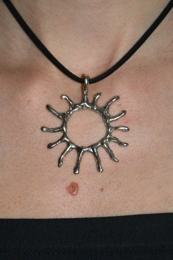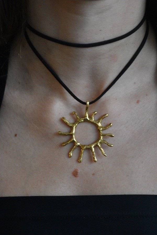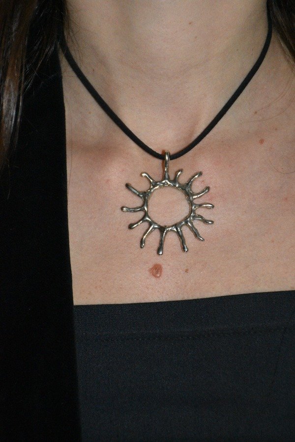 Cordón en gamuza sintética negra. Terminales del cordón enchapadas en Alpaca o Bronce a combinación del material del dije.